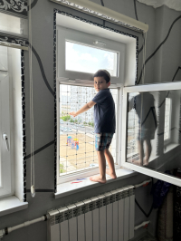 Система оконной безопасности, представляющая собой металлическую сетку, препятствующую выпадению детей из окон